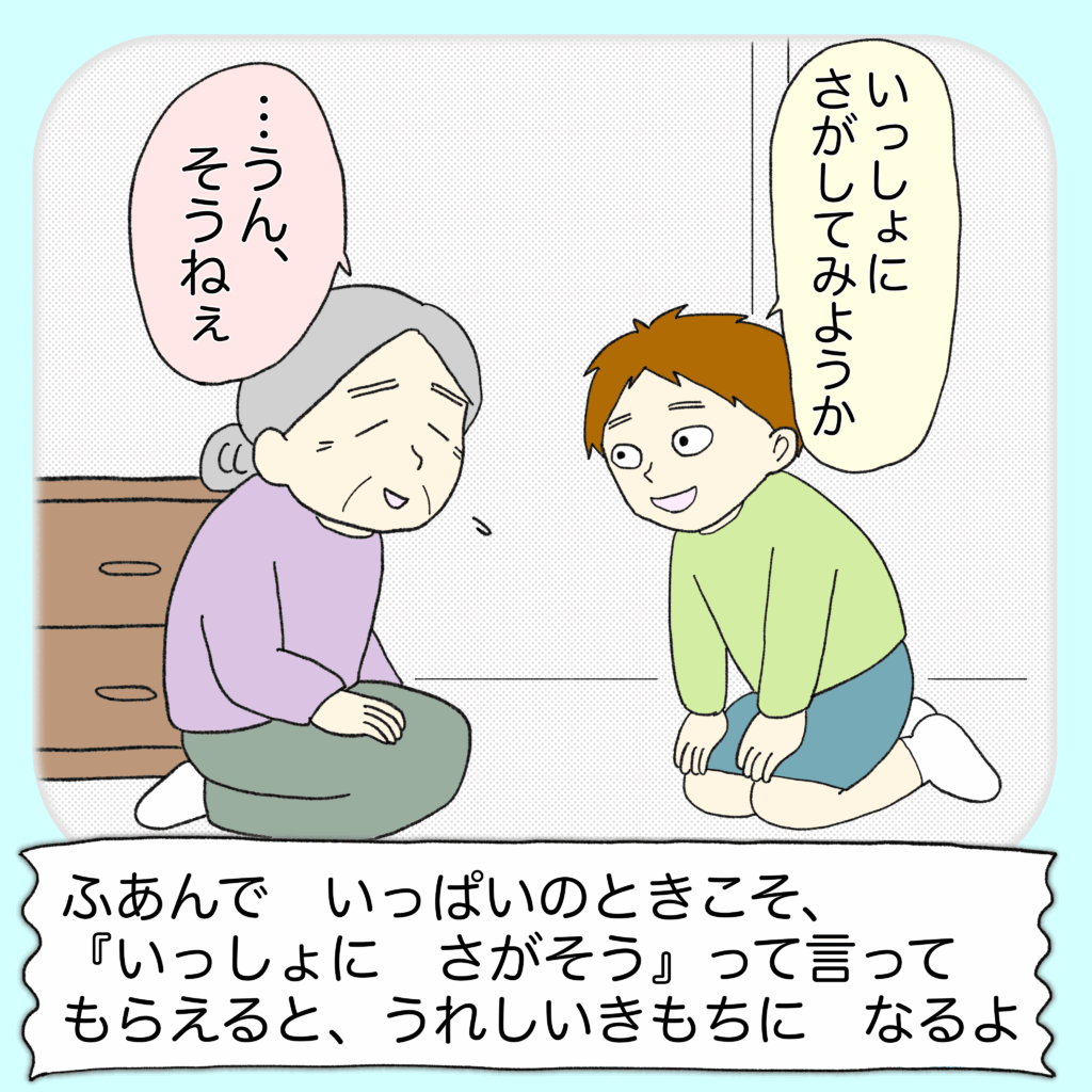 だからこそ、いっしょにさがしてあげると安心できるんだよ。